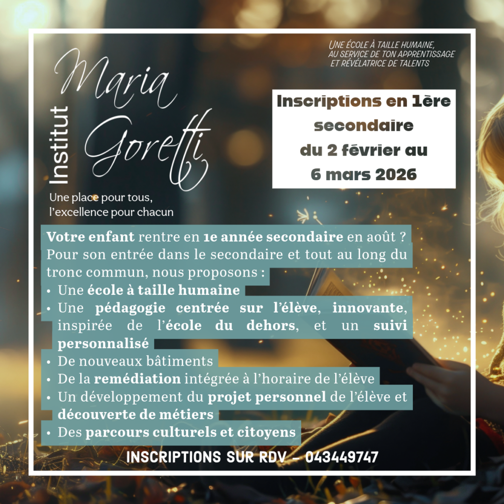 - pour les futurs élèves de 1e : du 2 février au 6 mars 2026 (sur rdv – appelez le 043449747)